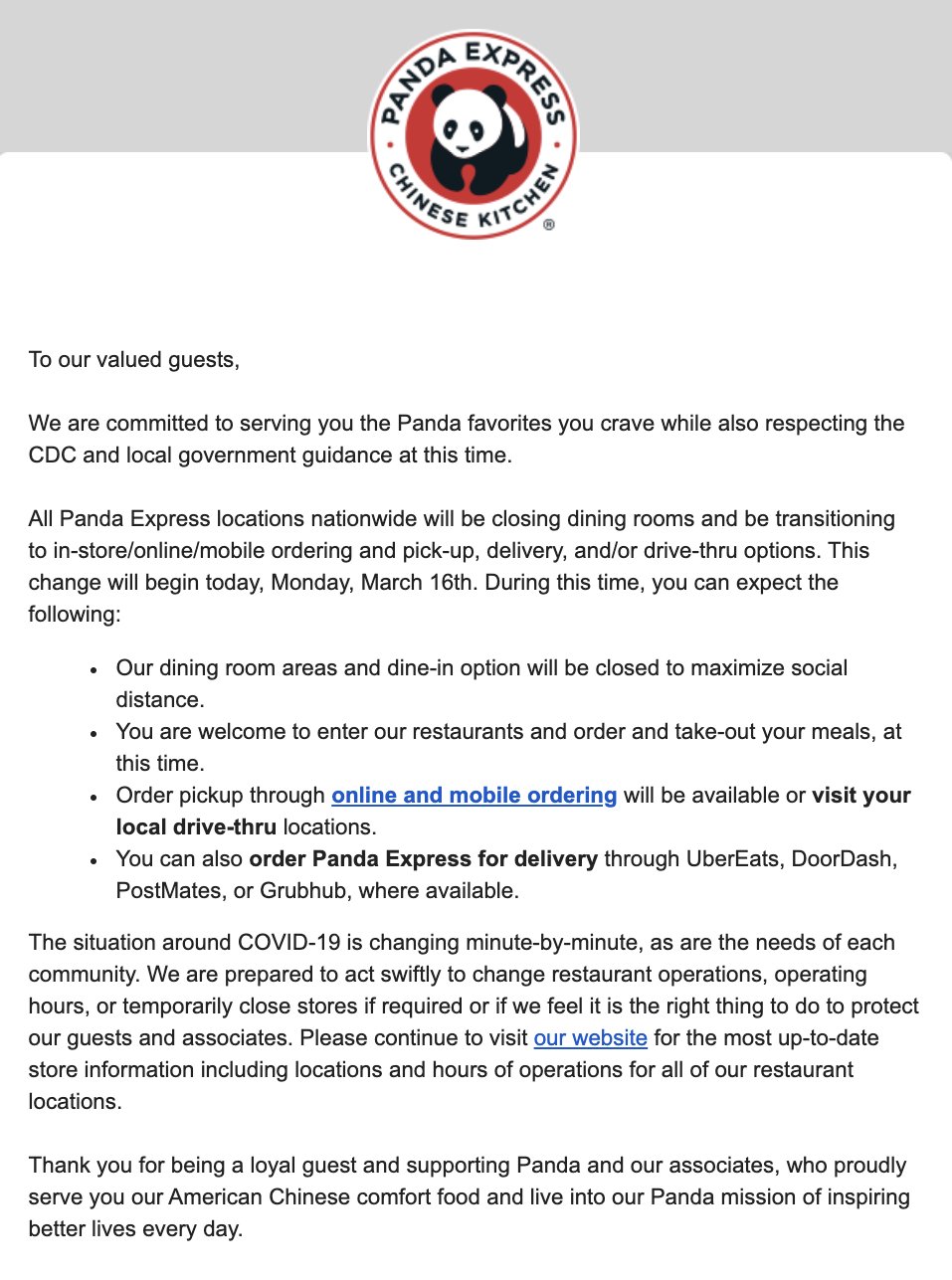 Panda Express Ar Twitter We Are Open For Takeout Drive Thru And Delivery Order Now From The Comfort Of Your Home Let S All Stay Safe Everyone Https T Co Vt534ch771 Twitter